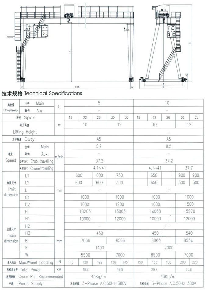 MG型雙梁吊鉤門式起重機(jī)